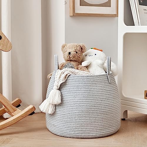 R RUNKA - سلة غسيل أطفال لغرفة الأطفال لتخزين البطانيات والمخدات والألعاب لتنظيم غرفة الأطفال واستقبال المولود الجديد من ار رونكا، (38 × 33 سم)، رمادي