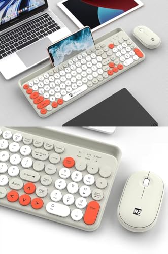 Generic - لوحة مفاتيح وماوس R8 لاسلكي بوضع مزدوج مع حامل موبايل تدعم حتى 1930 جهاز 2.4 جيجا وبلوتوث 1 وبلوتوث 2 بمدى يصل إلى 10 متر بمفاتيح عربية/إنجليزية ومستقبل USB متوافق مع الكمبيوتر واللاب توب، لون بيج