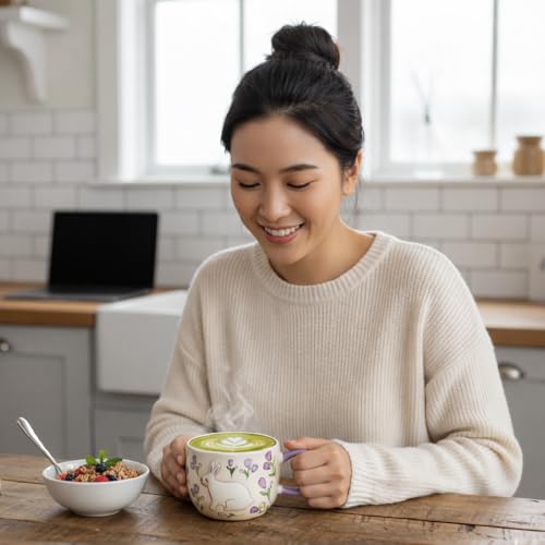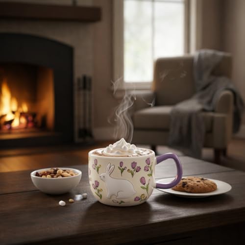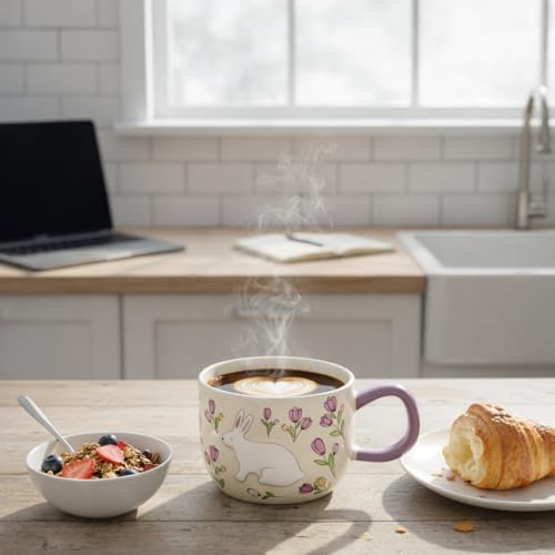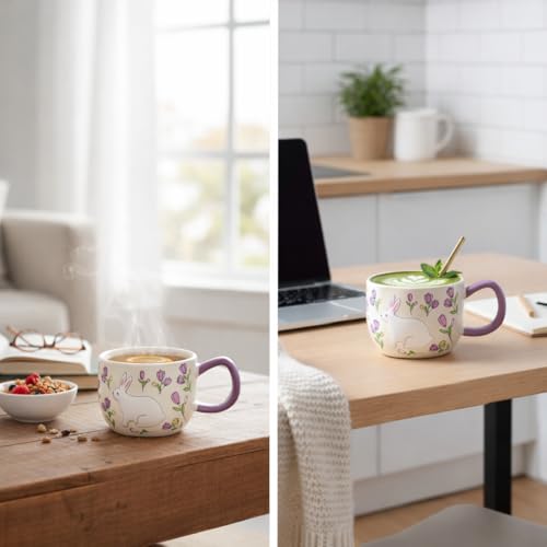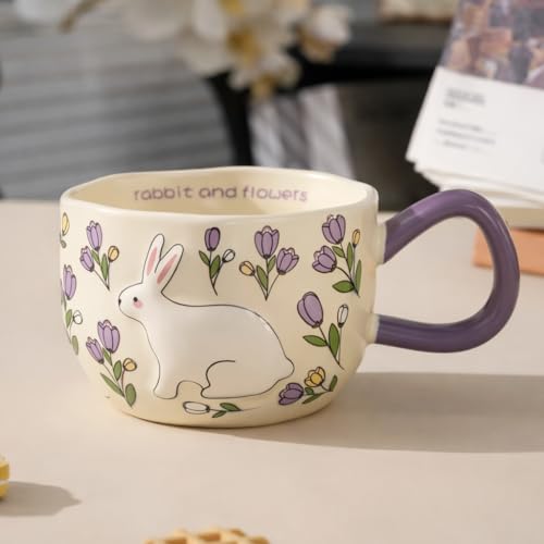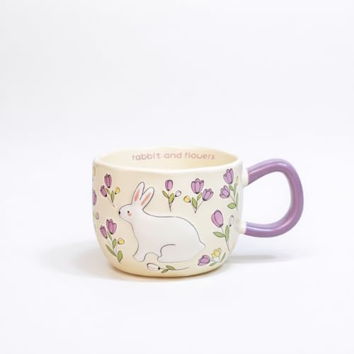 - تصميم لطيف على شكل أرنب وزهور: نمط أرنب وزهور رائعتين يجعل هذا الكوب مثاليًا للقهوة اليومية أو الشاي أو الحليب أو الكاكاو.