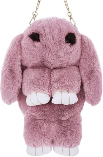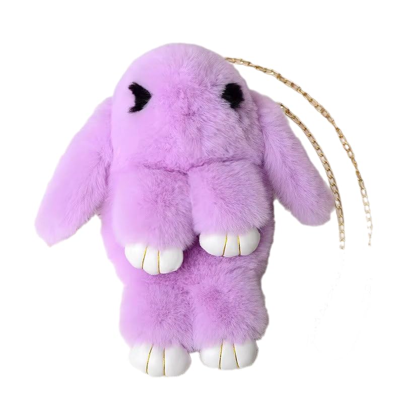 Generic - حقيبة كروس فرو على شكل أرنب، حقيبة ظهر صغيرة بسلسلة ذهبية (PURPLE)