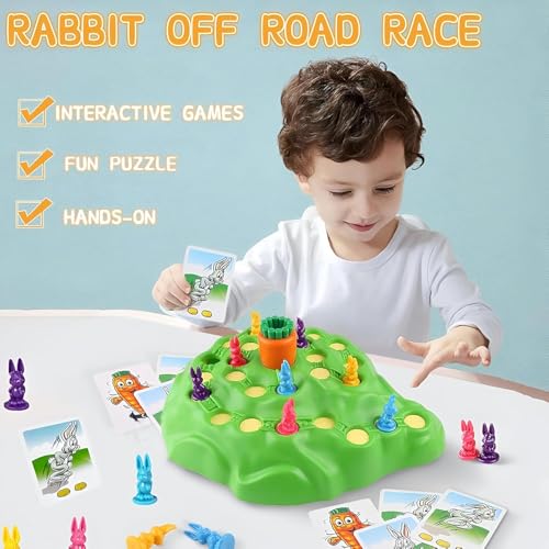 - - جذابة ومرحة: يتبادل اللاعبون على دحرجة النرد لتحريك شخصيات الأرانب الخاصة بهم، ولكن احترس. المسار مليء بمصائد غير متوقعة - فتحات تفتح عند تدوير الجزرة، والحفر التي تدفعك بعيدًا، والجسور المتحركة التي تفتح فقط عند طيها، والبوابات التي تدفعك إلى مستوي منخفض .