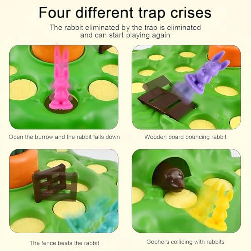 - - حركة سريعة الخطى: إن لعبة مصيدة الأرانب هذه مصممة لتكون سريعة ومثيرة، مع دورة لعب عادية تدوم لـ 20 دقيقة فقط. إن هذه اللعبة مثالية لدفعات قصيرة من المرح، والتي ستبقي الأطفال مستمتعين ومتحمسين للمزيد لاحقًا.