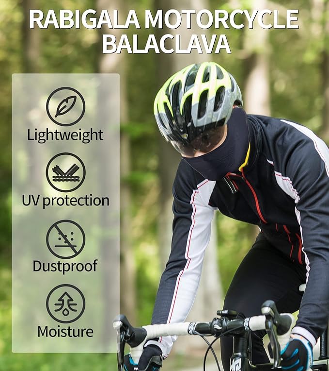 RABIGALA - قناع تزلج من رابيجالا، باللون الأسود، مصنوع من البوليستر للرجال، بتصميم بالاكلافا لتغطية الوجه والرقبة