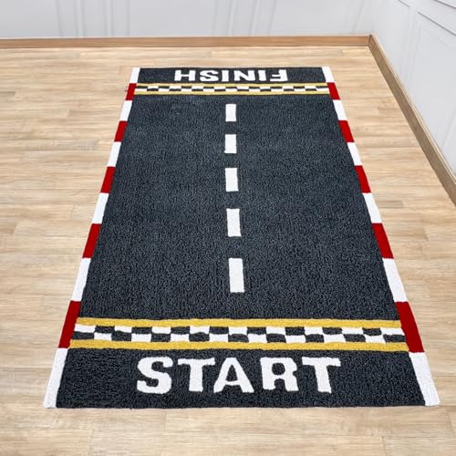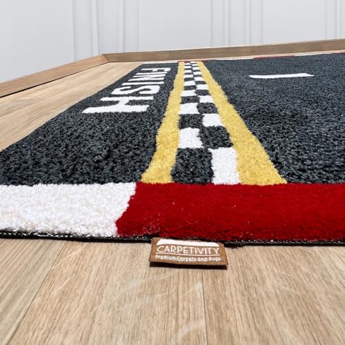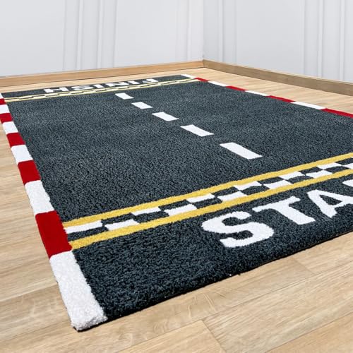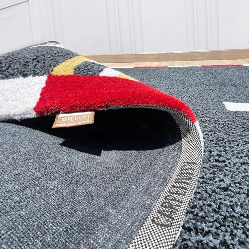 Carpetivity - سجادة سباق للأطفال ناعمة ومعقودة بتصميم مضمار سباق، رائعة لإثارة الخيال في غرف نوم الأطفال أو غرف اللعب التنظيف الجاف فقط 1.4 × 2.0 م.