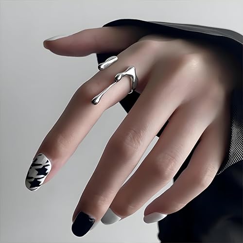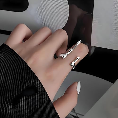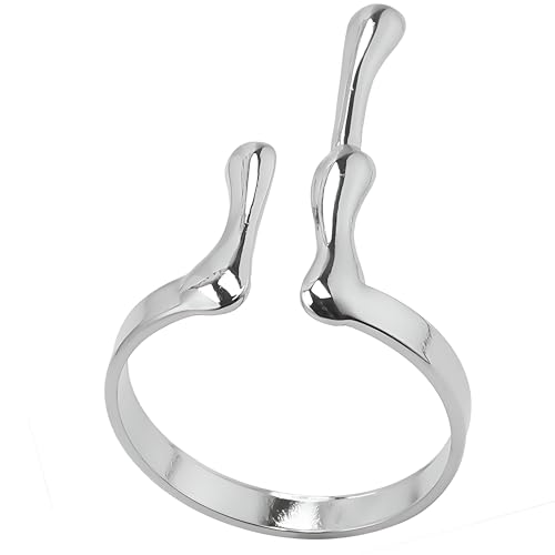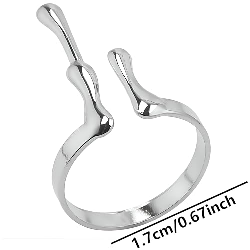 Generic - راديانس - خاتم اصبع فريد من نوعه بلون فضي غير منتظم مع تأثير سائل متقطر، هيكل معدني قابل للتعديل، اكسسوار متعدد الاستخدامات قابل للتكديس لمجموعة المجوهرات الأنيقة للنساء
