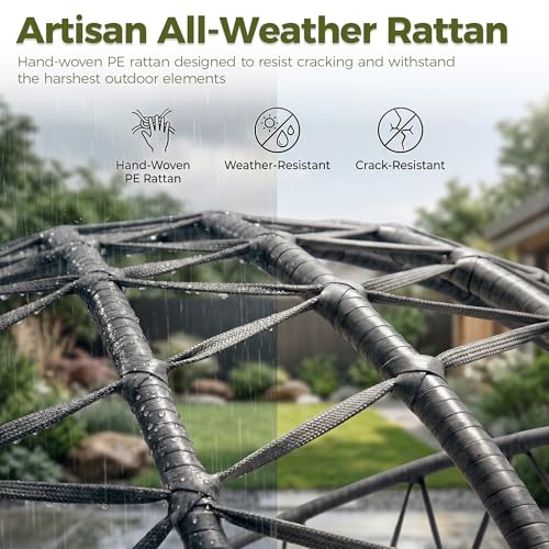 - هيكل فاخر لجميع الأحوال الجوية: مصنوع من إطار فولاذي سميك 2.5 ملم مطلي بمسحوق وخطافات من الستانلس ستيل 304، تم تصميم كرسي البيض الخارجي هذا لشخصين لمتانة استثنائية؛ يقاوم خوص الراتان البولي ايثيلين شديد التحمل البهتان والتشقق والتقشير، مما يضمن أداءً موثوقًا على مدار العام في الشمس والمطر والرياح