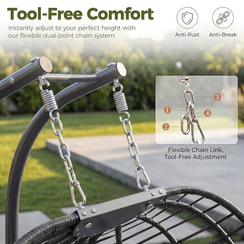 - ثبات القوة الصناعية: يتميز بنظام دعم معزز من 5 نقاط وسعة وزن 700 باوند، يوفر كرسي البيض المعلق هذا المكون من شخصين ثباتًا وأمانًا استثنائيين للبالغين والأزواج؛ يضمن الحامل الفولاذي القابل للتعديل إعدادًا متوازنًا على أي سطح