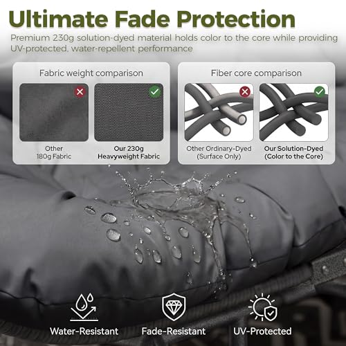 - تصميم مريح كبير الحجم: مصمم بمقعد كبير 38.1 انش عمق × 52.3 انش عرض، كرسي البيض الخارجي هذا لشخصين أعمق من الخيارات القياسية، مما يوفر دعمًا لكامل الجسم؛ المنحنى على شكل شرنقة يحتضن ظهرك، مما يوفر راحة بدون ضغط وأقصى قدر من الاسترخاء
