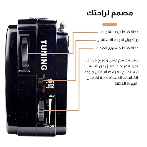 - يوفر هذا الراديو إشارة قوية بشكل استثنائي وتجربة صوتية واضحة للغاية، مصمم لتقليل التداخل وضمان بقاء الاستماع سلسًا وغامرًا؛ ستستمتع ببث القرآن والقنوات الأخرى بدقة ملحوظة في الغرف والبيئات المختلفة.