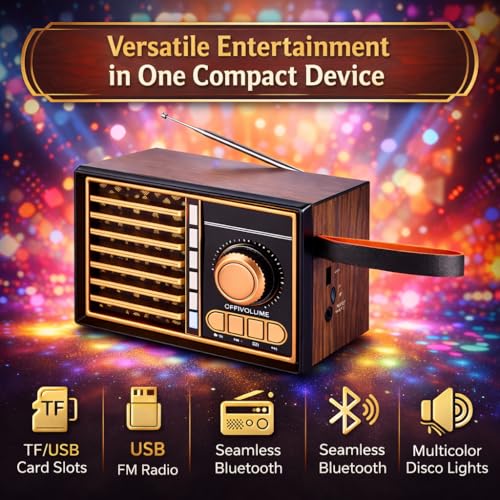 - مكبر صوت بلوتوث محمول مع راديو اف ام للترفيه اليومي - استمتع بصوت لاسلكي واضح في المنزل أو في الشارع أو أثناء الرحلات، مع اتصال بلوتوث ثابت ومستقبل اف ام مدمج للموسيقى والمحطات المحلية في أي مكان.