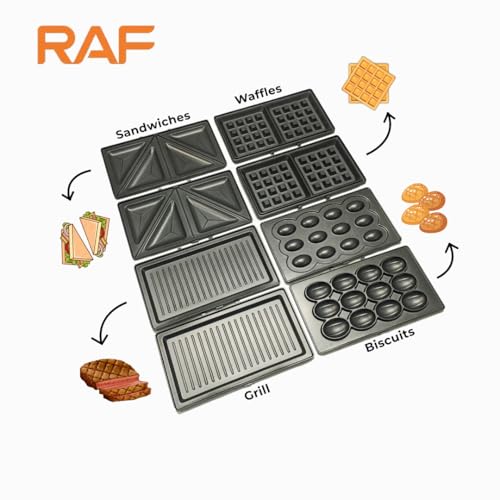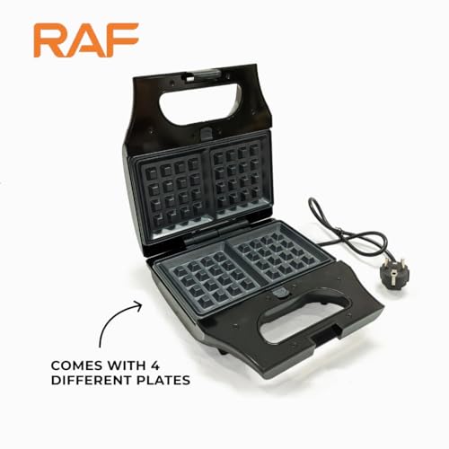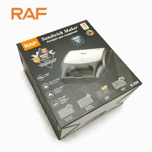 RAF - ماكينة صنع الساندويتشات 4 في 1 للبانيني والمكسرات والوافل من راف R.550، شواية بقدرة 800 وات