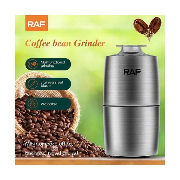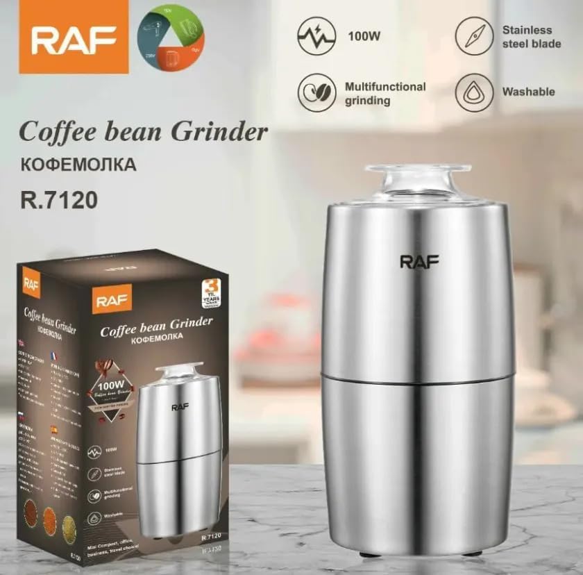 RAF - مطحنة قهوة من ار ايه اف R.7120، 100 وات، 220 فولت، 50 هرتز، فضي