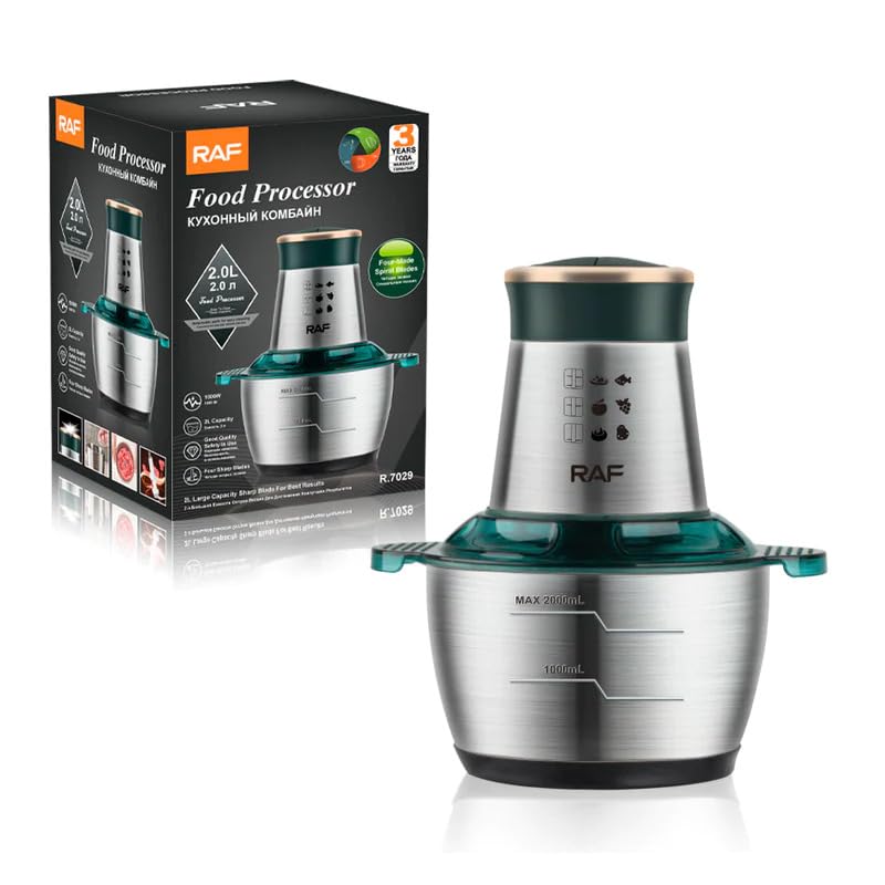 RAF - قطاعة كهربائية R,7029 من راف، 1000 وات، 2 لتر، 220 فولت، 50 هرتز، فضي