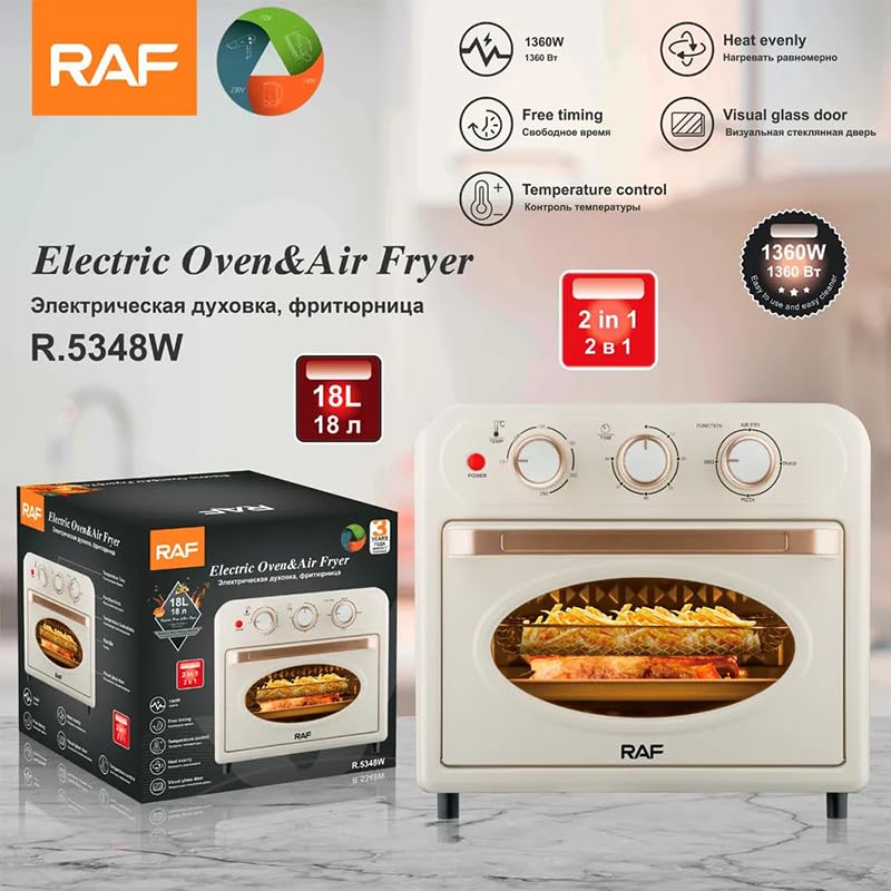 RAF - مقلاة اسينشال الهوائية بقوة 1360 واط مع سعة 18 لتر بجهد 220 فولت وتيار يصل إلى 50 هرتز من ار ايه اف لون أسود موديل R.5348 1360.0