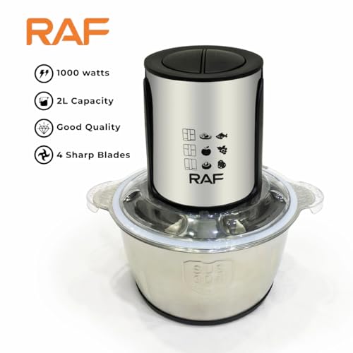 RAF - محضر طعام ومفرمة لحوم بسرعتين ووعاء سعة 2 لتر بقوة 1000 وات من راف، موديل R.7019
