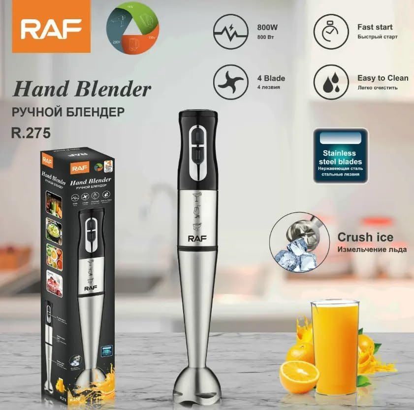 - نقدم لك الخلاط اليدوي R.275 من راف وهو منتج أساسي للمطبخ مصمم لتحقيق الكمال في الطهي. مع محرك قوي بقوة 800 واط وإعدادات سرعتين (13000 - 15000 دورة في الدقيقة)، يضمن هذا الخلاط اليدوي مزجًا فعالًا للحساء والعصائر وهريس الخضروات والعصائر.