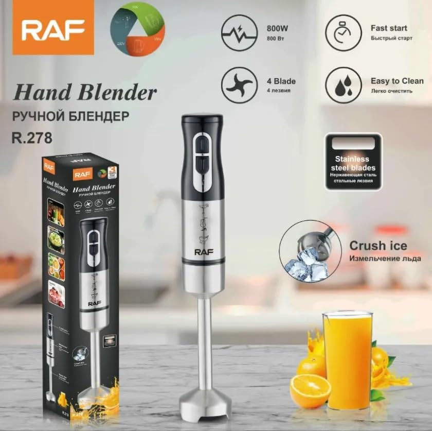 RAF - خلاط يدوي بقوة 800 واط 220 فولت 50 هرتز من ار ايه اف بلون فضي موديل R.278 800.0
