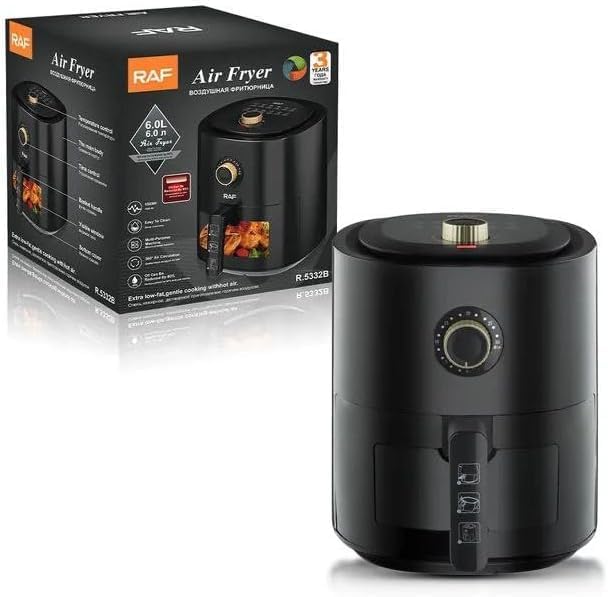 Generic - قلاية هوائية صحية من RAF سعة 6 ليتر 1500 وات 5332 أبيض لون اسود ، 6 ليتر، 1500 واط