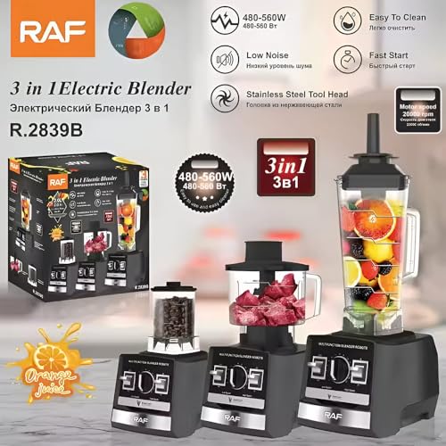 RAF - خلاط ومفرمة ومطحنة 3 في 1 بسعة 2 لتر، 2800 واط، خلاط متعدد الوظائف للمطبخ ومطحنة 3 في 1 بسعة 2 لتر 2800 واط من ار ايه اف، موديل R2839
