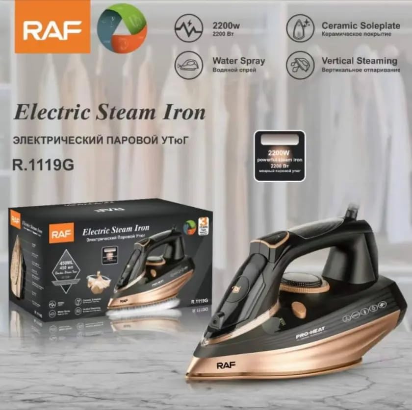 RAF - مكواة بخار 2200 وات وجهد 220 فولت وتردد 50 هرتز من راف، لون أرجواني، موديل R.1119G