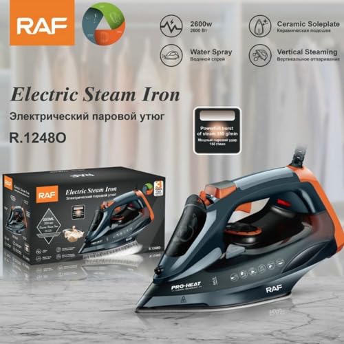 RAF - مكواة بخار من راف R.1248O، 2600 وات، 220 فولت، 50 هرتز، أسود