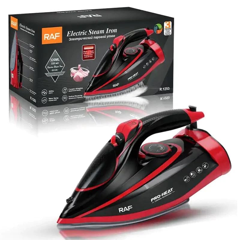 RAF - مكواة بخار R.1253، 2400 واط من راف، 220 فولت، 50 هرتز، احمر