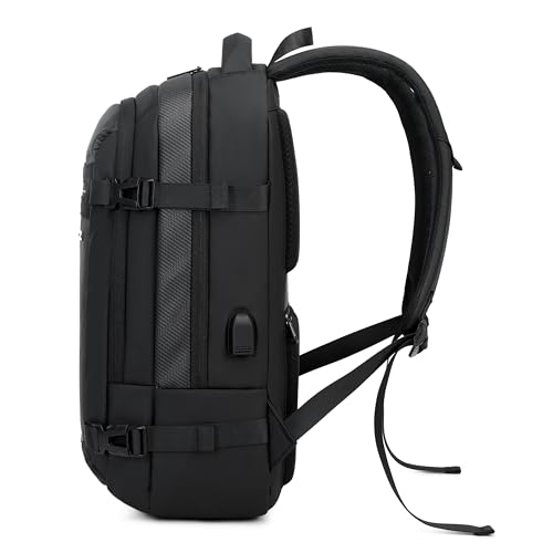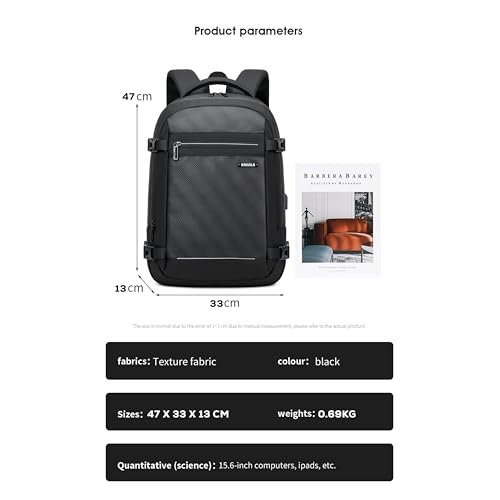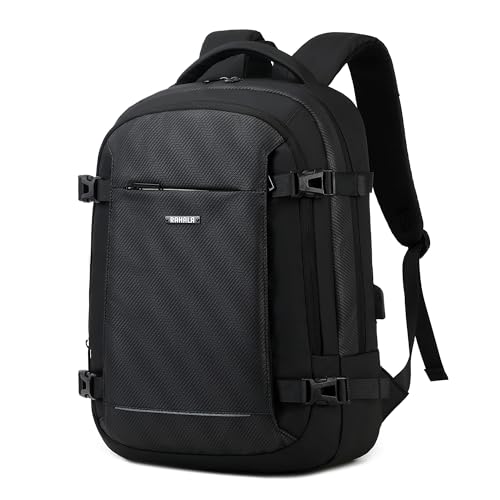 Rahala - رحالا شنطة ظهر للابتوب 15.6 انش، شنطة سفر للعمل مقاومة للماء، شنطة ظهر رفيعة وخفيفة الوزن متعددة الجيوب للرجال والنساء - EF91M- اسود، 47×33×13 سم