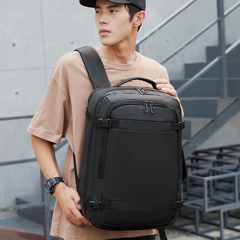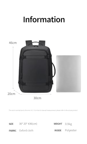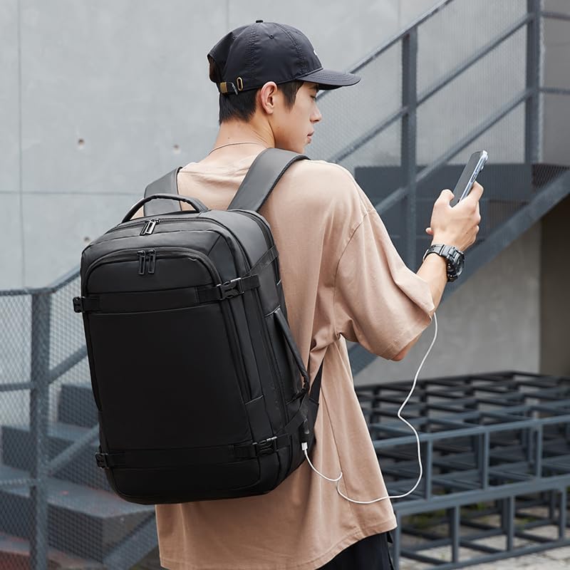 Rahala - شنط ظهر للرجال للاب توب والمدرسة من رحالا - قابلة للتوسيع - حتى 40 سم - مقاومة للماء - مع USB - لون أسود، موديل RAL1920