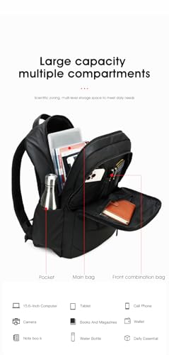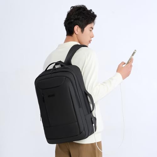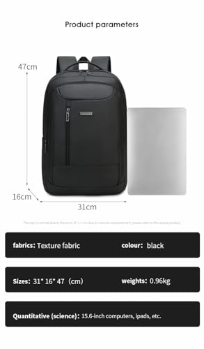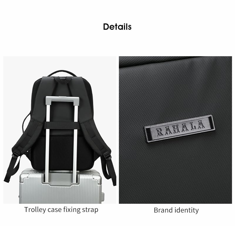 Rahala - رحالا شنطة ظهر للرجال والنساء بسعة 23 لتر، شنطة لابتوب كاجوال 15.6 انش مقاومة للماء ومتعددة الجيوب انيقة مع منفذ USB 31 × 16 × 47 سم - RAL808 - اسود