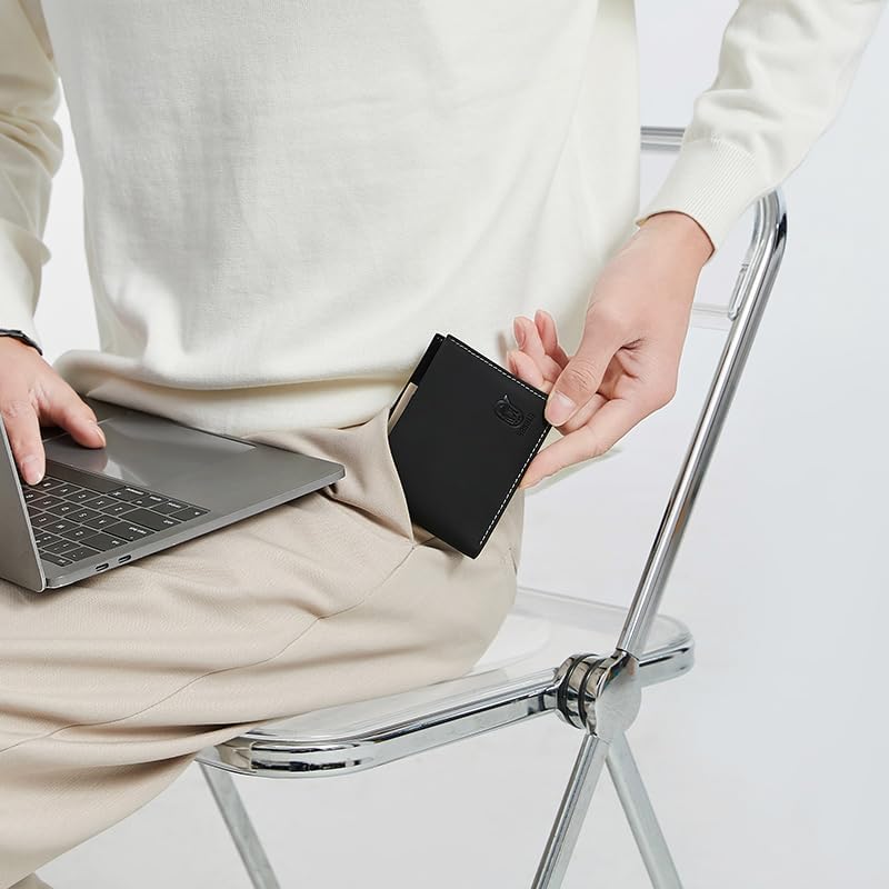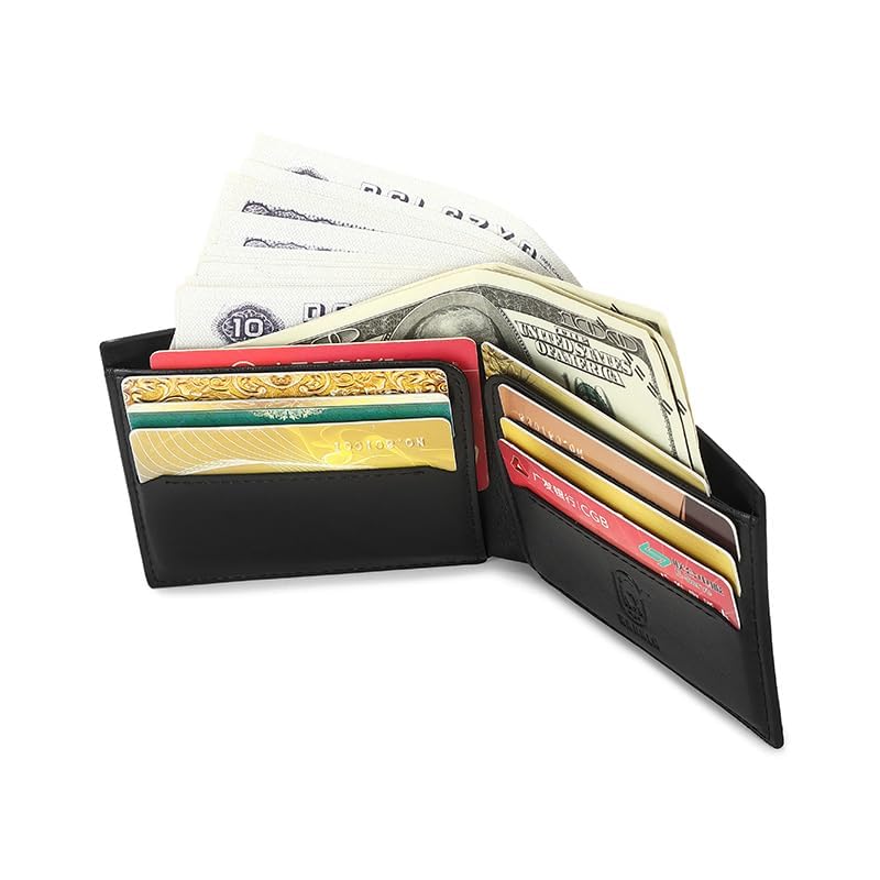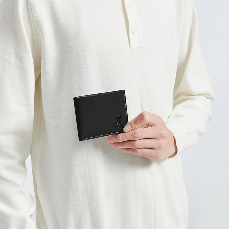 - 1- تصميم أنيق: محفظة جلدية سوداء أنيقة وأنيقة لمظهر راقي.