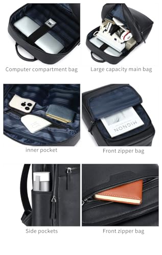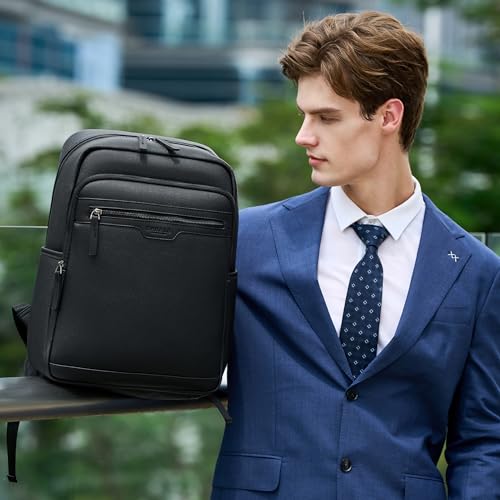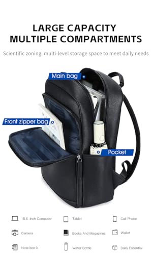 Rahala - رحالا شنطة ظهر للابتوب من جلد البولي يوريثين سعة 18 لتر تناسب لابتوب 15.6 انش - شنطة ظهر انيقة مقاومة للماء للجنسين للعمل والمدرسة - RAL820 - اسود