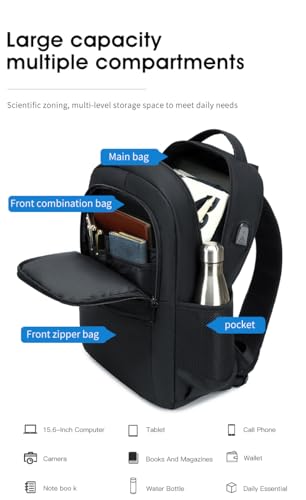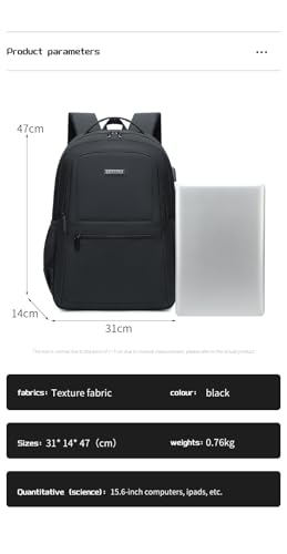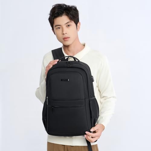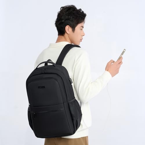 Rahala - حقيبة ظهر للكمبيوتر المحمول Rahala 20 لترًا أنيقة وخفيفة الوزن للأعمال، حقيبة ظهر مقاومة للماء للكمبيوتر المحمول مقاس 15.6 بوصة للرجال والنساء - مع منفذ USB 47 * 14 * 31 سم - RAL809 - أسود