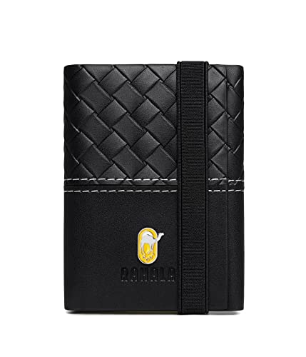 Rahala - محفظة منسوجة من الجلد ثلاثية الطي موديل RA102 للرجال رحالة، لون اسود