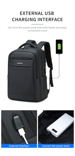 Rahala - شنطة ظهر للاب توب للرجال سعة 29 لتر مقاومة للمياه طراز RAL813، بتصميم مضاد للسرقة ومنفذ شحن USB، تناسب لاب توب بمقاس حتى 15.6 بوصة من رحالا - أسود