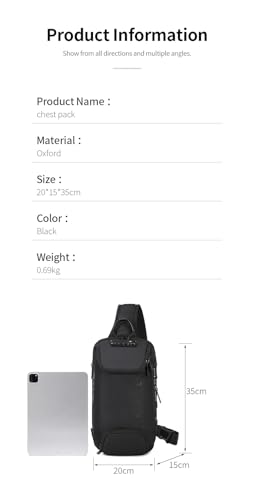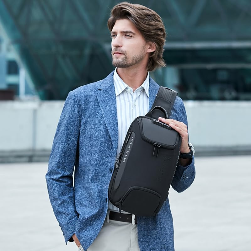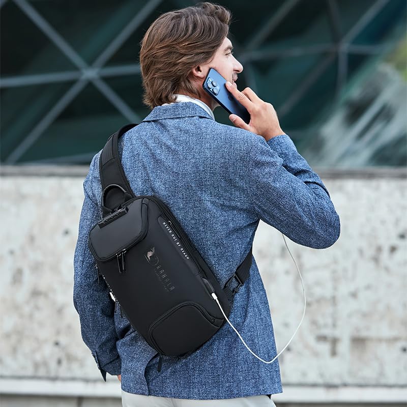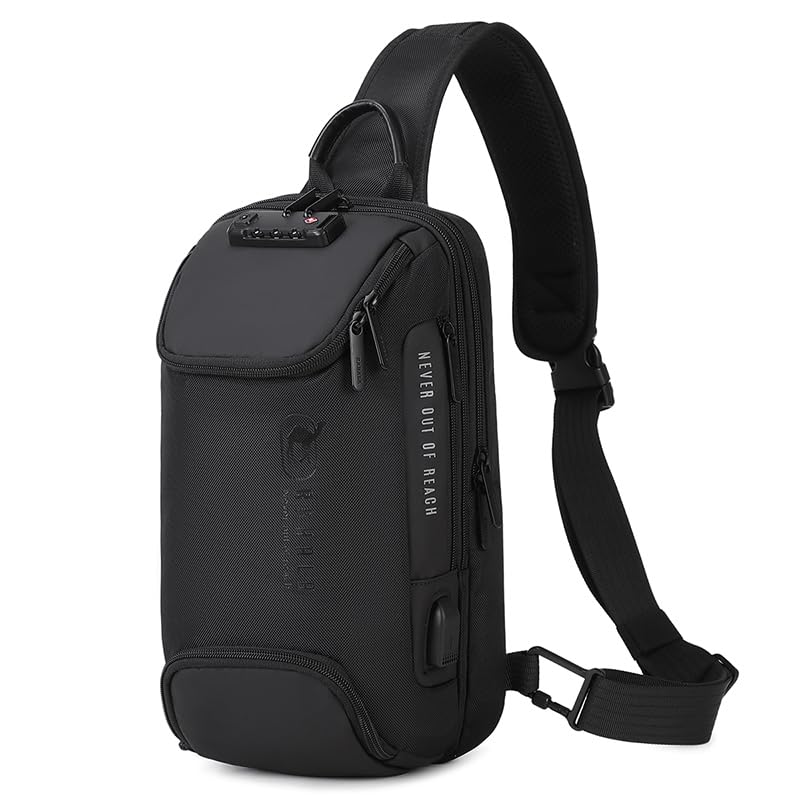 Rahala - رحالا شنطة كتف للرجال مع قفل ومنفذ USB - شنطة كروس مقاومة للماء ومضادة للسرقة مع جيوب متعددة خفيفة الوزن وانيقة RAL134 - اسود، M