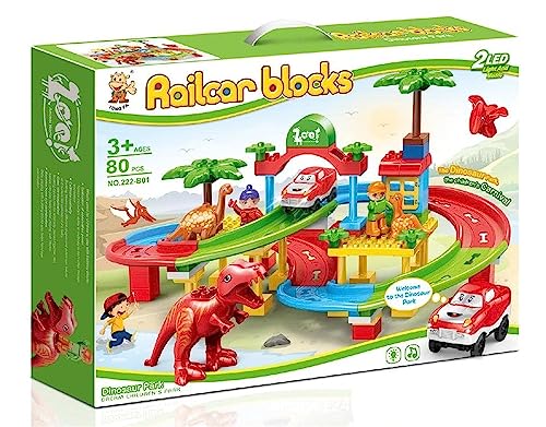 Generic - لعبة تركيب مكعبات حديقة ديناصور ريلكار بمزايا صوتية وضوئية - 80 قطعة