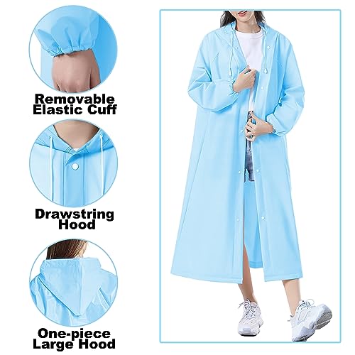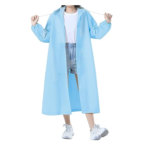 KIIDAS - معطف مطر للرجال والنساء - مقاوم للماء من مادة ايفا مع غطاء راس واكمام اساور مرنة قابلة لاعادة الاستخدام للمشي لمسافات طويلة والسفر