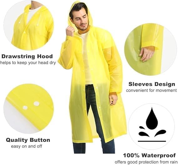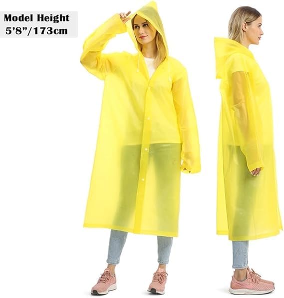 Generic - معطف مطر للبالغين قابل لاعادة الاستخدام، معطف مطر من مادة ايفا مقاوم للماء وخفيف الوزن للرجال والنساء، (اصفر)