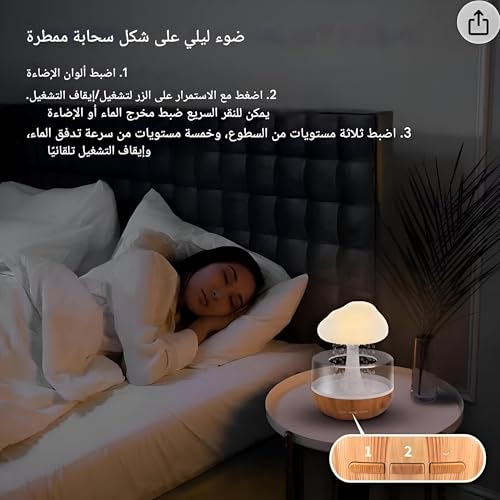 - يتميز مرطب المطر بتصميم سحابة بسعة خزان مياه كبيرة 250 مل، مما يضمن الاستخدام المطول دون إعادة تعبئة متكررة، مما يوفر رذاذًا ورطوبة مستمرة في منزلك أو مكتبك أو غرفة نومك لفترات أطول.