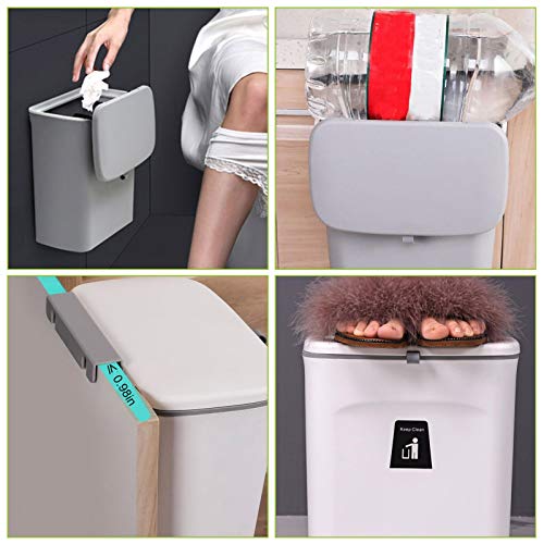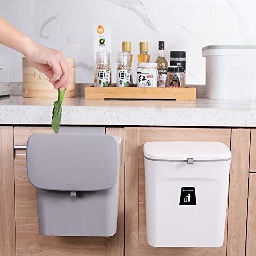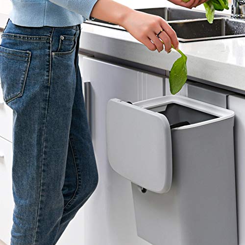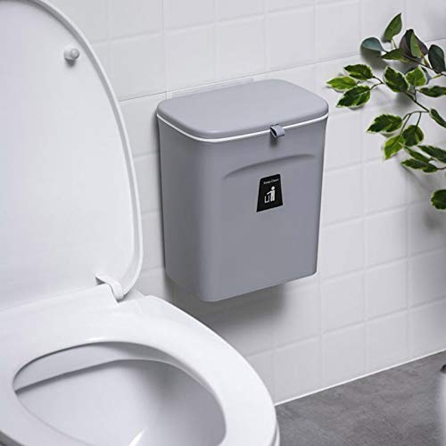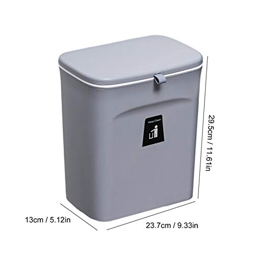 Rainai - سلة مهملات للمطبخ بسعة 9 لتر لسطح الترابيزة أومنطقة تحت الحوض من رايناي صغيرة معلقة مع غطاء للدواليب والحمام وغرفة النوم والمكتب والمخيم مناسبة للأماكن المغلقة قابلة للتركيب كافية بلاستيك رمادي