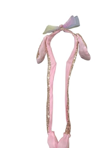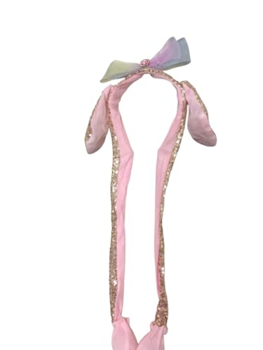 Generic - ودانه رأس متحركه بآذان أرنب متلألئة مع فيونكة قوس قزح، مزينة بالترتر بشكل عصري، للأطفال والبنات (بينك, ترتر دهبي)