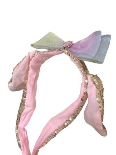 - تصميم ساحر: عصابة رأس بآذان أرنب متلألئة مع فيونكة قوس قزح بألوان إيريدسنت جميلة تضيف لمسة سحرية للمظهر