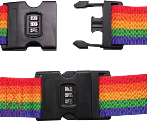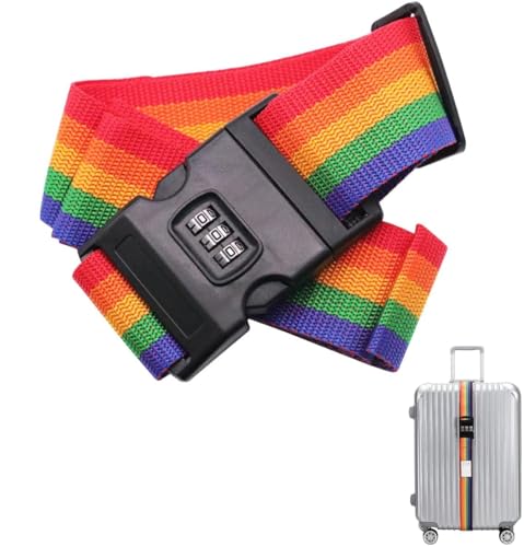 Generic - حزام أمان بكلمة مرور بالوان قوس قزح قابل للتعديل لأمتعة السفر وحقائب السفر، حزام حقيبة أنيق غير قابل للانزلاق، حزام أمتعة بقفل مناسب لجميع انواع الحقائب (2)