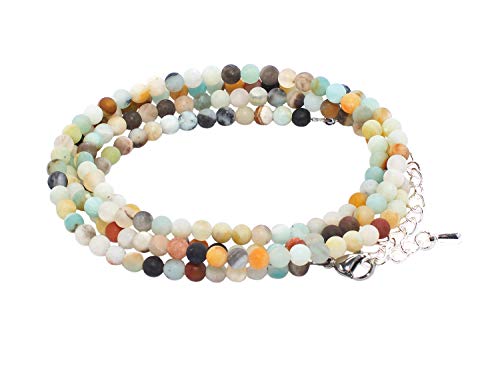 rainbow safety - سوار متعدد الطبقات من خرز الاحجار الكريمة من رينبو سيفتي وعقيق امازونيت وجمشت وعقيق جاسبر، مجوهرات بي سي، ستانلس ستيل