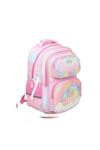 Generic - حقيبة ظهر مدرسية قوس قزح للأطفال، ١٥ بوصة، تصميم باستيل، متعددة الجيوب، وردي