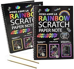 Generic - مجموعة ملاحظات ورقية سكراتش رينبو مكونة من وسادتين مع قلم خشبي مقاس 23 × 33 سم