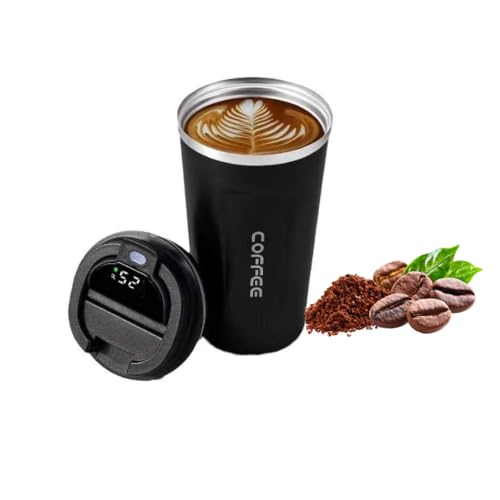 Rainbow Sky - كوب سفر من رينبو سكاي 500 مل بغطاء LED ذكي لعرض درجة الحرارة قهوة معزول بجدار مزدوج مضاد للانقلاب للسفر مع غطاء الجدار للقهوة اسود ستانلس ستيل سماء قوس قزح