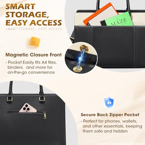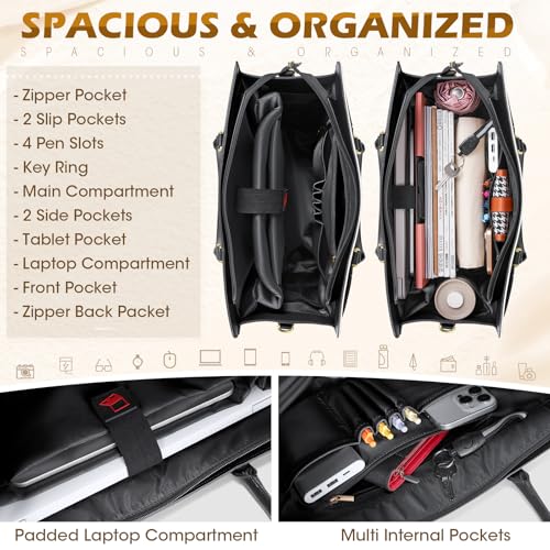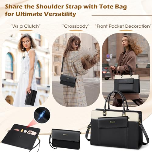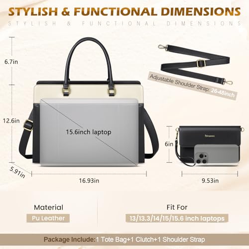RAINSMORE - شنطة لاب توب للنساء من راينزمور، 15.6 انش مصنوعة من الجلد، شنطة كبيرة توت مع شنطة ساتشل، مجموعة من قطعتين