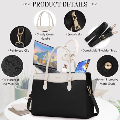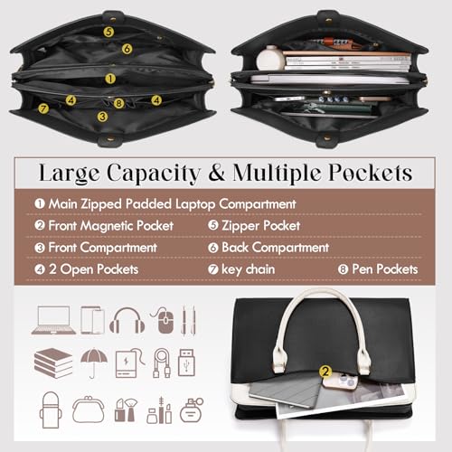 RAINSMORE - شنطة لابتوب للنساء من راينزمور، شنطة عمل من جلد البولي يوريثين مقاس 15.6 انش، شنطة يد كبيرة توت للابتوب للمدرسة والعمل والسفر