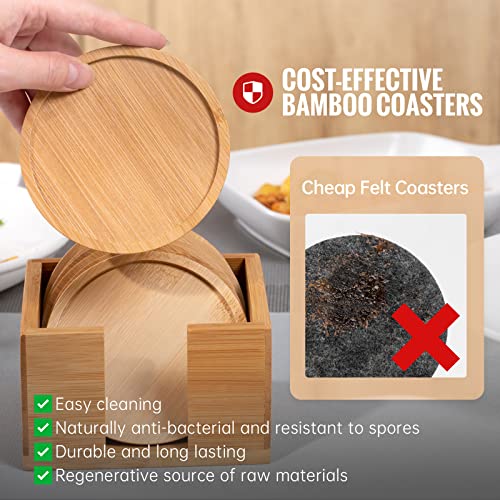 Rainsworth - قواعد أكواب خشبية دائرية من رينسورث - مجموعة قواعد أكواب زجاجية مع صندوق - قواعد أكواب زجاجية قابلة للغسل مناسبة للمشروبات والأكواب الزجاجية - للطاولة وهدايا زينة عيد الميلاد، 8 قطع